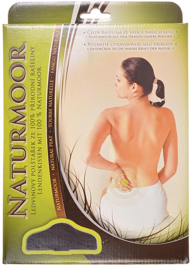 Rašelinový termofor na problémy s bederní páteří, ledvinami, bolestmi břicha. Uzpůsobený tvarem. Opatřený praktickým pásem na suché zipy.