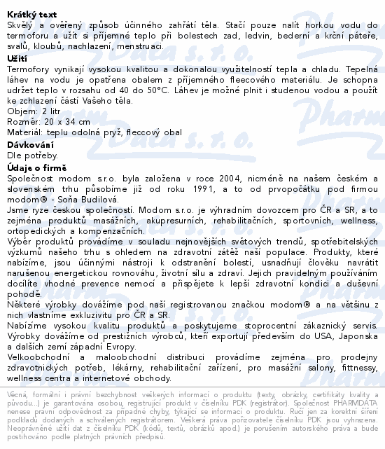 Skvělý a ověřený způsob účinného zahřátí těla. Stačí pouze nalít horkou vodu do termoforu a užít si příjemné teplo při bolestech zad, ledvin, bederní a krční páteře, svalů, kloubů, nachlazení, menstruaci.
