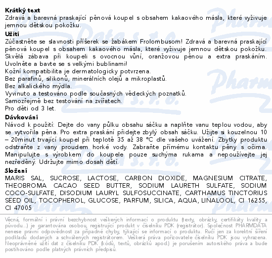 Zdravá a barevná praskající pěnová koupel s obsahem kakaového másla, které vyživuje jemnou dětskou pokožku.