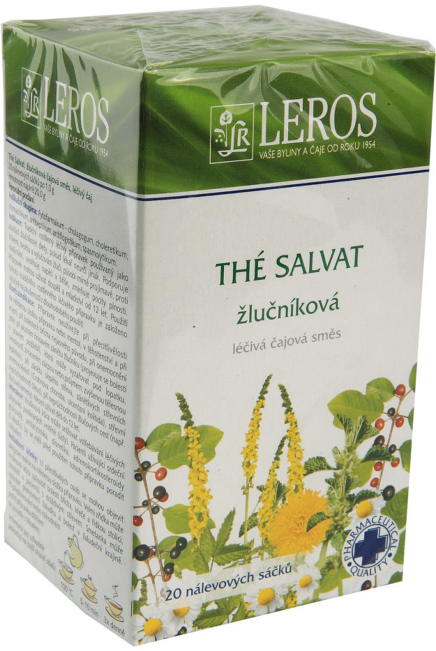 Leros Thé Salvat léčivý čaj choroby žlučníku a žlučových cest. Je vhodnou součástí jaterní a žlučníkové diety. Podporuje tvorbu a vylučování žluči. Čtěte pozorně příbalový leták.