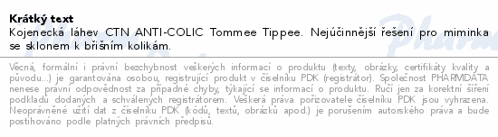 Kojenecká láhev CTN ANTI-COLIC Tommee Tippee. Nejúčinnější řešení pro miminka se sklonem k břišním kolikám.