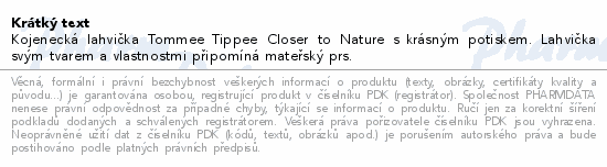 Kojenecká lahvička Tommee Tippee Closer to Nature s krásným potiskem. Lahvička svým tvarem a vlastnostmi připomíná mateřský prs.