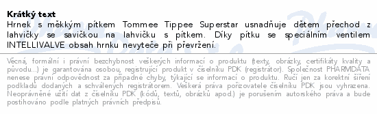 Hrnek s měkkým pítkem Tommee Tippee Superstar usnadňuje dětem přechod z lahvičky se savičkou na lahvičku s pítkem. Díky pítku se speciálním ventilem INTELLIVALVE obsah hrnku nevyteče při převržení.