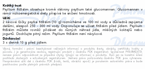 Psyllium fit&slim obsahuje kromě vlákniny psyllium také glucomannan. Glucomannan v rámci nízkoenergetické diety přispívá ke snížení hmotnosti.
