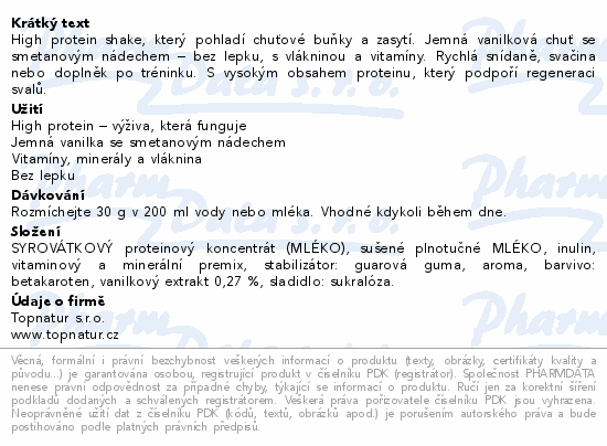 Topnatur SLIM&FIT Protein Shake vanilka 30g