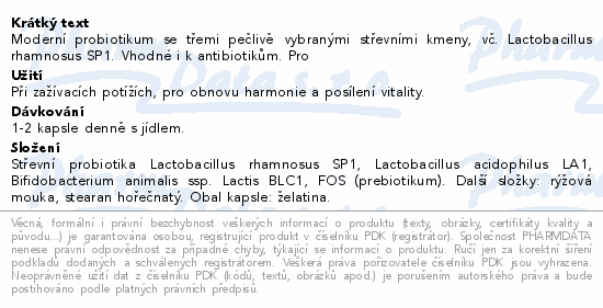 Moderní probiotikum se třemi pečlivě vybranými střevními kmeny, vč. Lactobacillus rhamnosus SP1. Vhodné i k antibiotikům. Pro