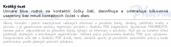 Unicare blue roztok na kontaktní čočky čistí, dezinfikuje a odstraňuje bílkovinné usazeniny bez mnutí kontaktních čoček v dlani.