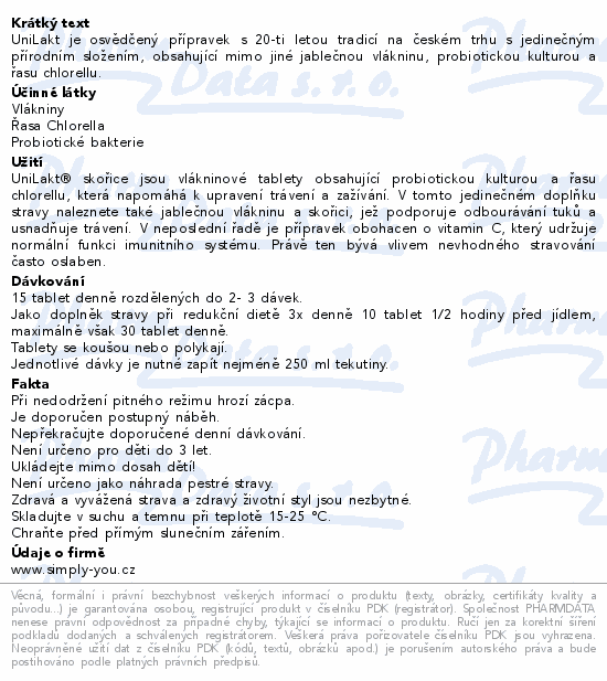 UniLakt je osvědčený přípravek s 20-ti letou tradicí na českém trhu s jedinečným přírodním složením, obsahující mimo jiné jablečnou vlákninu, probiotickou kulturou a řasu chlorellu.