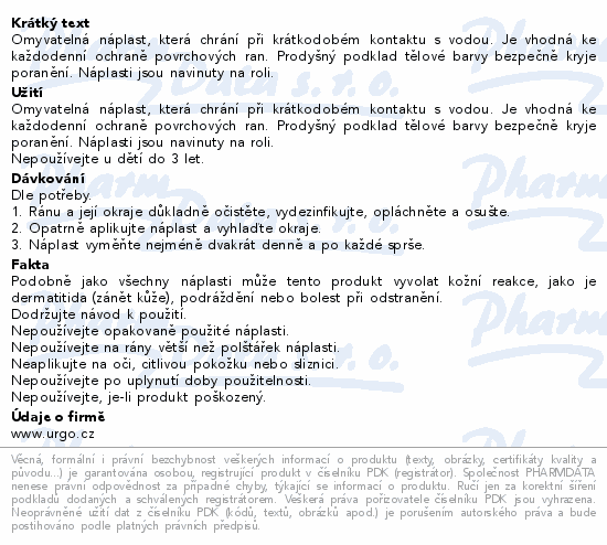 Omyvatelná náplast, která chrání při krátkodobém kontaktu s vodou. Je vhodná ke každodenní ochraně povrchových ran. Prodyšný podklad tělové barvy bezpečně kryje poranění. Náplasti jsou navinuty na roli.