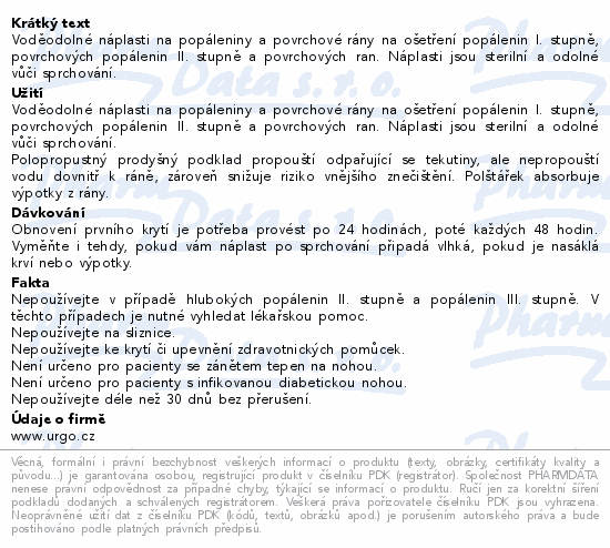 Voděodolné náplasti na popáleniny a povrchové rány na ošetření popálenin I. stupně, povrchových popálenin II. stupně a povrchových ran. Náplasti jsou sterilní a odolné vůči sprchování.