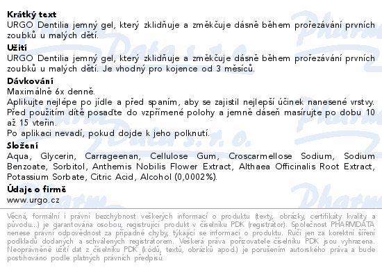 URGO Dentilia jemný gel, který zklidňuje a změkčuje dásně během prořezávání prvních zoubků u malých dětí.