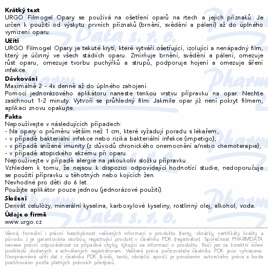 URGO Filmogel Opary se používá na ošetření oparů na rtech a jejich příznaků. Je určen k použití od výskytu prvních příznaků (brnění, svědění a pálení) až do úplného vymizení oparu.