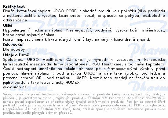 Fixační kotoučová náplast URGO PORE je vhodná pro citlivou pokožku (díky podkladu z netkané textilie s vysokou kožní snášenlivostí), přizpůsobí se pohybu, bezbolestně odstranitelná.