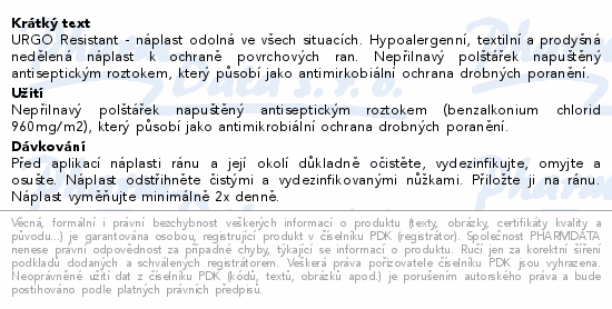 URGO Resistant - náplast odolná ve všech situacích. Hypoalergenní, textilní a prodyšná nedělená náplast k ochraně povrchových ran. Nepřilnavý polštářek napuštěný antiseptickým roztokem, který působí jako antimirkobiální ochrana drobných poranění.