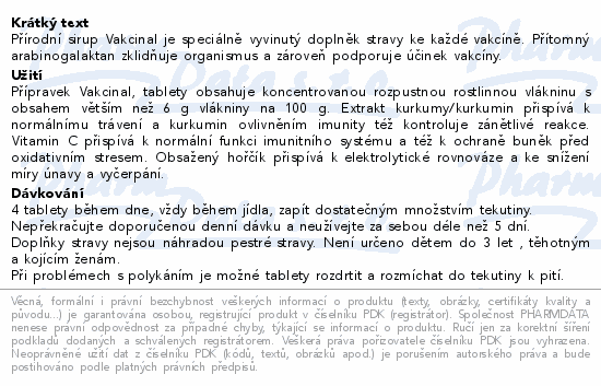 Přírodní sirup Vakcinal je speciálně vyvinutý doplněk stravy ke každé vakcíně. Přítomný arabinogalaktan zklidňuje organismus a zároveň podporuje účinek vakcíny.