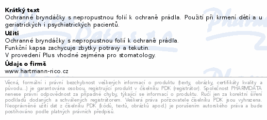 Ochranné bryndáčky s nepropustnou folií k ochraně prádla. Použití při krmení dětí a u geriatrických i psychiatrických pacientů.