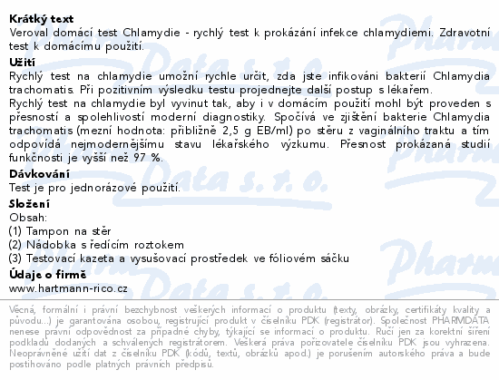 Veroval domácí test Chlamydie - rychlý test k prokázání infekce chlamydiemi. Zdravotní test k domácímu použití.