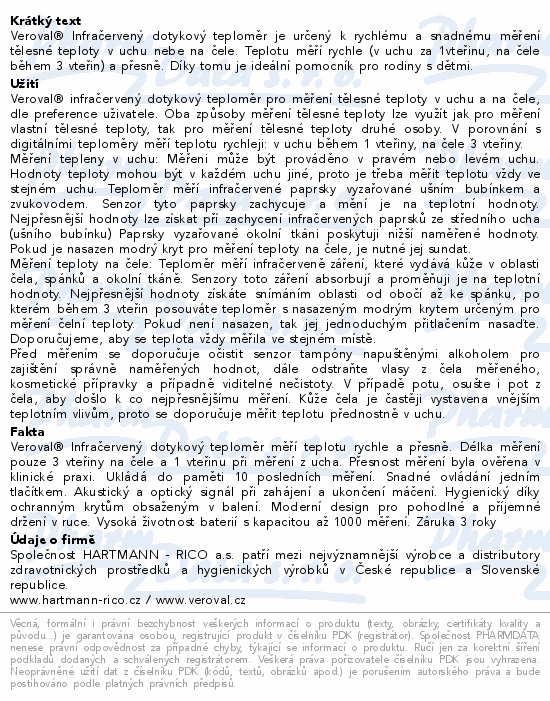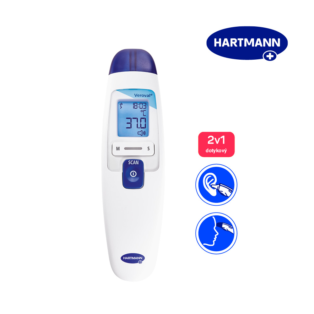 Veroval® Infračervený dotykový teploměr je určený k rychlému a snadnému měření tělesné teploty v uchu nebe na čele. Teplotu měří rychle (v uchu za 1vteřinu, na čele během 3 vteřin) a přesně. Díky tomu je ideální pomocník pro rodiny s dětmi.