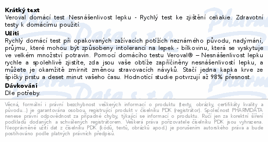 Veroval domácí test Nesnášenlivost lepku - Rychlý test ke zjištění celiakie. Zdravotní testy k domácímu použití.