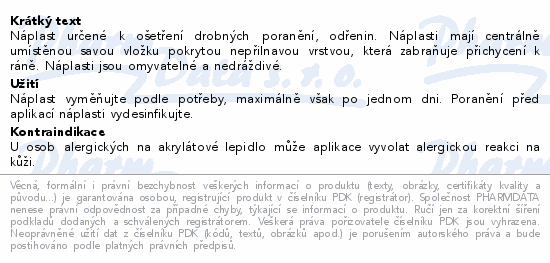 Náplast určené k ošetření drobných poranění, odřenin. Náplasti mají centrálně umístěnou savou vložku pokrytou nepřilnavou vrstvou, která zabraňuje přichycení k ráně. Náplasti jsou omyvatelné a nedráždivé.