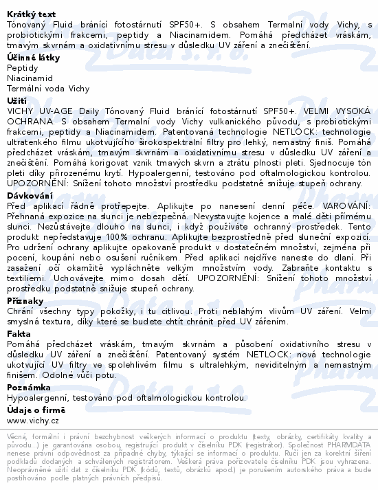 Tónovaný Fluid bránící fotostárnutí SPF50+. S obsahem Termalní vody Vichy, s probiotickými frakcemi, peptidy a Niacinamidem. Pomáhá předcházet vráskám, tmavým skvrnám a oxidativnímu stresu v důsledku UV záření a znečištění.