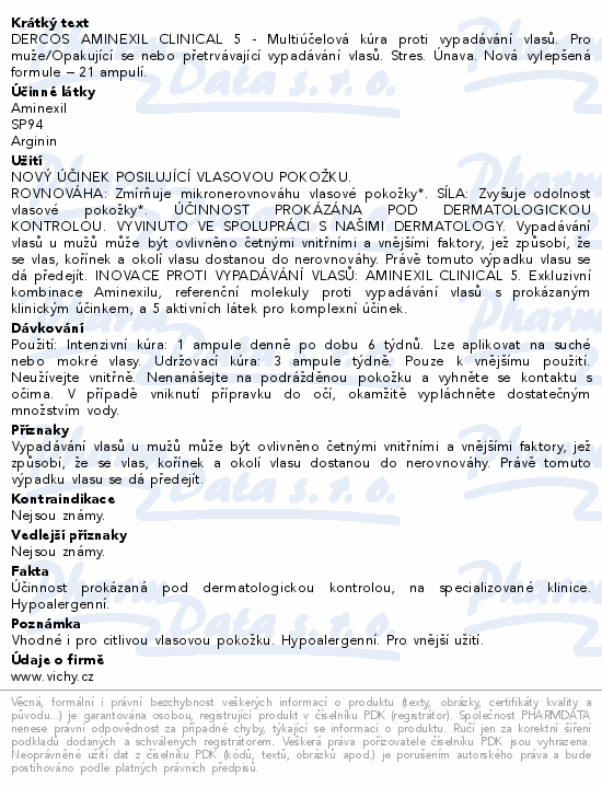DERCOS AMINEXIL CLINICAL 5 - Multiúčelová kúra proti vypadávání vlasů. Pro muže/Opakující se nebo přetrvávající vypadávání vlasů. Stres. Únava. Nová vylepšená formule – 21 ampulí.