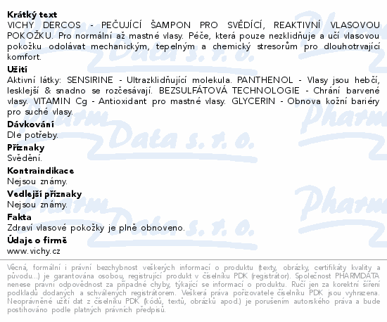 VICHY DERCOS - PEČUJÍCÍ ŠAMPON PRO SVĚDÍCÍ, REAKTIVNÍ VLASOVOU POKOŽKU. Pro normální až mastné vlasy. Péče, která pouze nezklidňuje a učí vlasovou pokožku odolávat mechanickým, tepelným a chemický stresorům pro dlouhotrvající komfort.