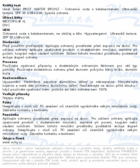 Ideál Soleil PROT WATER BRONZ - Ochranná voda s betakarotenem. Ultra-svěží textura. SPF 30 UVB+UVA. Vysoká ochrana.