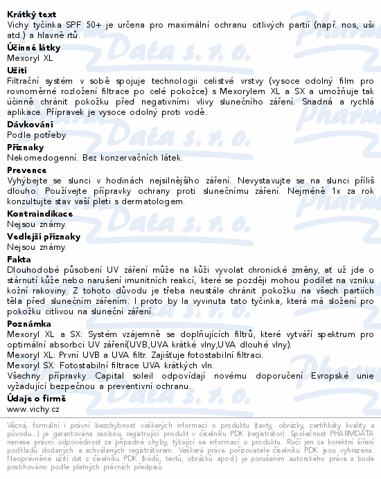 Vichy tyčinka SPF 50+ je určena pro maximální ochranu citlivých partií (např. nos, uši atd.) a hlavně rtů.