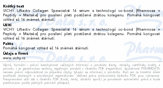 VICHY Liftactiv Collagen Speacialist 16 sérum s technologií co-bond [Rhamnosa + Peptidy + Maitake] pro posílení pleti postižené ztrátou kolagenu. Pomáhá korigovat vzhled až 16 známek stárnutí.