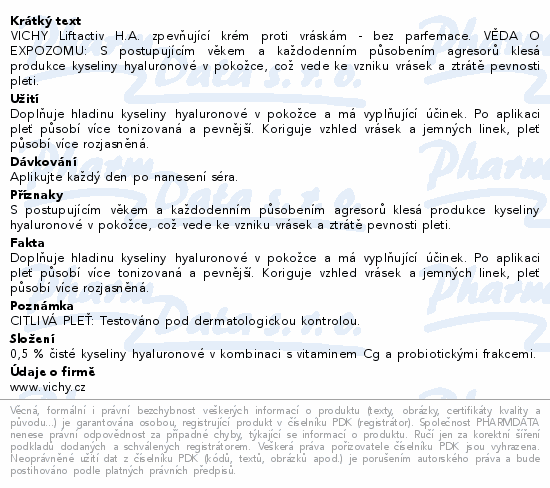 VICHY LIFTACTIV H.A. krém bez parfemace 50ml