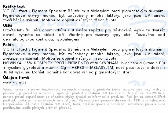 VICHY Liftactiv Pigment Specialist B3 sérum s Melasylem proti pigmentovým skvrnám. Pigmentové skvrny mohou být způsobeny mnoha faktory, jako jsou UV záření, znečištění a stárnutí. Mohou se objevit v různých fázích života.