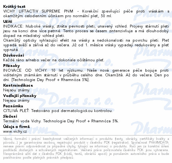 VICHY LIFTACTIV SUPREME PNM - Korekční zpevňující péče proti vráskám s okamžitým celodenním účinkem pro normální pleť, 50 ml.