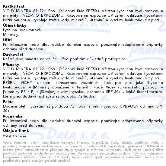 VICHY MINERAL89 72H Posilující denní fluid SPF50+ s čistou kyselinou hyaluronovou a minerály . VĚDA O EXPOZOMU: Každodenní expozice UV záření oslabuje hydratační kožní bariéru a urychluje ztrátu vody, minerálů, vitaminů a kyseliny hyaluronové z pleti.