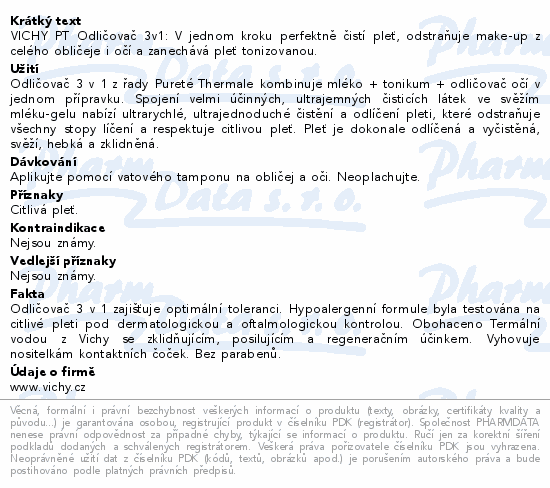 VICHY PT Odličovač 3v1: V jednom kroku perfektně čistí pleť, odstraňuje make-up z celého obličeje i očí a zanechává pleť tonizovanou.