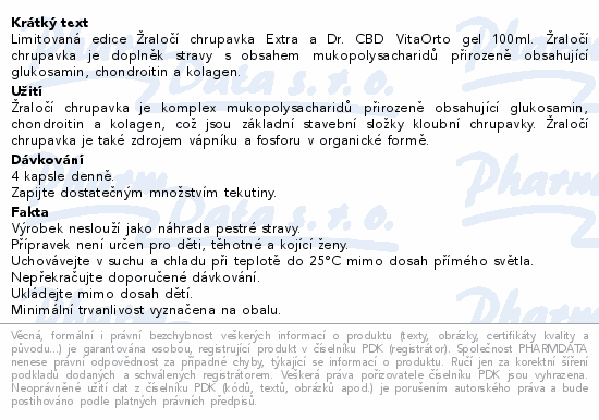 Limitovaná edice Žraločí chrupavka Extra a Dr. CBD VitaOrto gel 100ml. Žraločí chrupavka je doplněk stravy s obsahem mukopolysacharidů přirozeně obsahující glukosamin, chondroitin a kolagen.