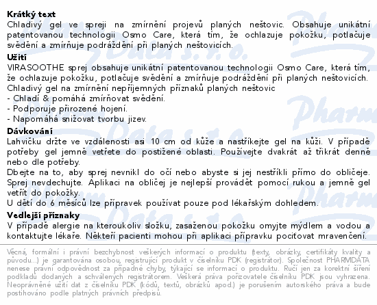 Chladivý gel ve spreji na zmírnění projevů planých neštovic. Obsahuje unikátní patentovanou technologii Osmo Care, která tím, že ochlazuje pokožku, potlačuje svědění a zmírňuje podráždění při planých neštovicích.