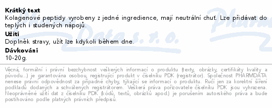 Kolagenové peptidy vyrobeny z jedné ingredience, mají neutrální chuť. Lze přidávat do teplých i studených nápojů.