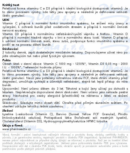 Peletková forma vitamínu C a D3 přispívá k ideální biologické dostupnosti vitaminů. Je to dáno procesem výroby, kde látky jsou spojeny a následně je definovaná velikosti částic granulací.