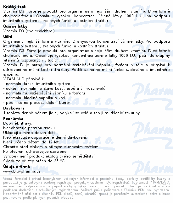 Vitamín D3 Forte 1000 I.U. tbl.90+90 Bio-Pharma