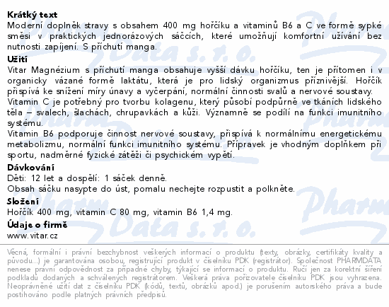 Vitar Magnezium 400mg+vit.B6+vit.C 20x2g