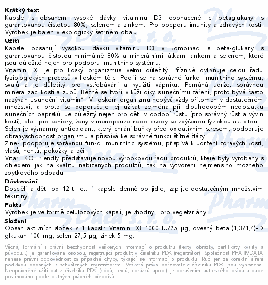 Vitar Vitamin D3 1000IU+betaglukan EKO cps.60