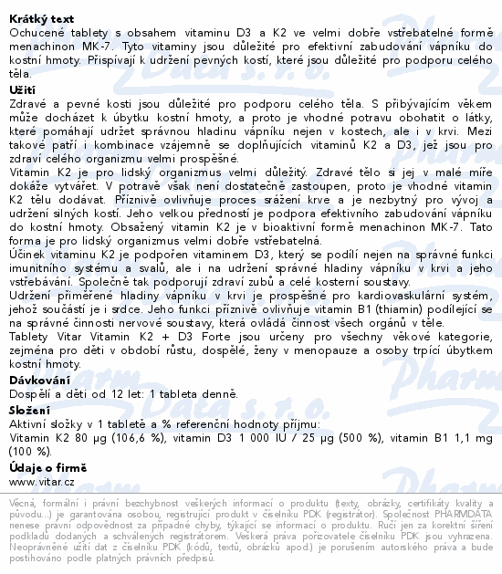 Ochucené tablety s obsahem vitaminu D3 a K2 ve velmi dobře vstřebatelné formě menachinon MK-7. Tyto vitaminy jsou důležité pro efektivní zabudování vápníku do kostní hmoty. Přispívají k udržení pevných kostí, které jsou důležité pro podporu celého těla.