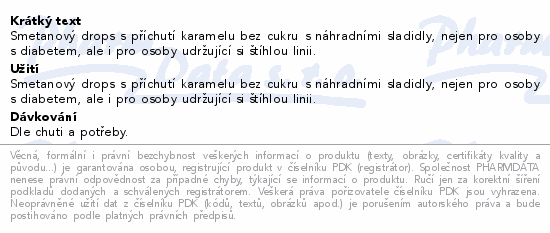 Smetanový drops s příchutí karamelu bez cukru s náhradními sladidly, nejen pro osoby s diabetem, ale i pro osoby udržující si štíhlou linii.