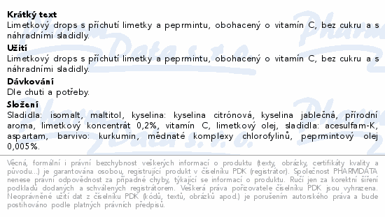 Vivil Limetka-peprmint+vitamín C bez cukru 120g