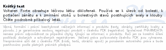 Voltaren Forte obsahuje léčivou látku diklofenak. Používá se k úlevě od bolesti, k potlačení zánětu a k zmírnění otoků u bolestivých stavů postihujících svaly a klouby. Čtěte pozorně příbalový leták.