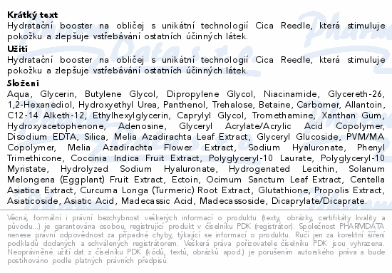 Hydratační booster na obličej s unikátní technologií Cica Reedle, která stimuluje pokožku a zlepšuje vstřebávání ostatních účinných látek.