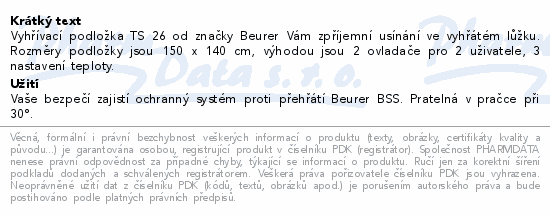 Vyhřívaná podložka do postele Beurer TS 26 XXL