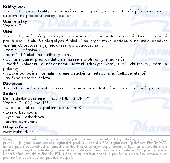 Walmark Céčko 100 mg s pomerančovou příchutí: