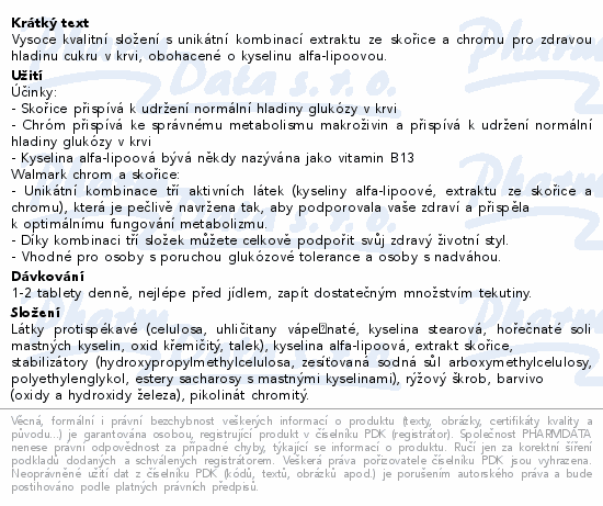 Vysoce kvalitní složení s unikátní kombinací extraktu ze skořice a chromu pro zdravou hladinu cukru v krvi, obohacené o kyselinu alfa-lipoovou.